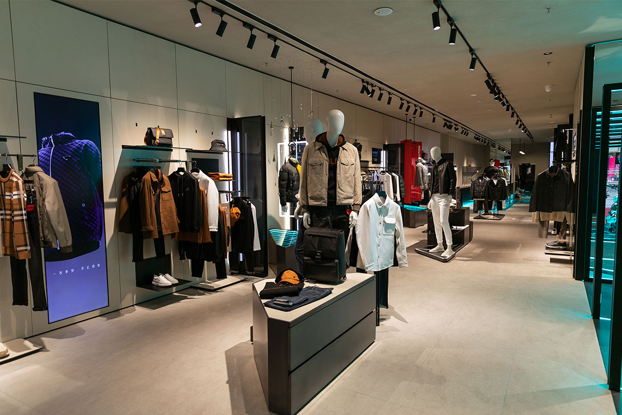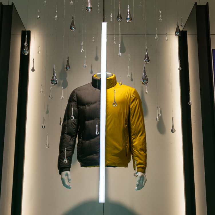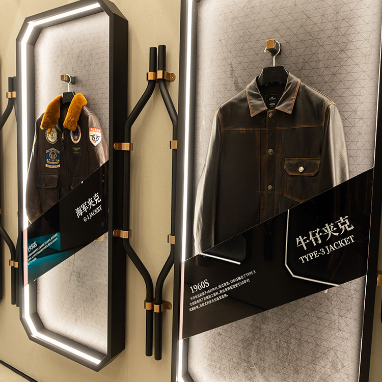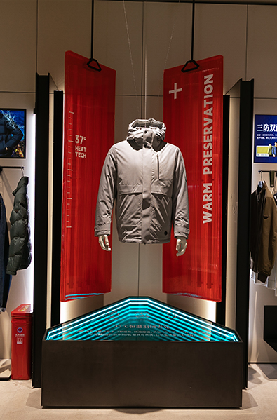 店內(nèi)先鋒產(chǎn)品聚勢集結(jié),在夾克旋轉(zhuǎn)展臺、功能互動展臺結(jié)合呈現(xiàn)。以中國首家